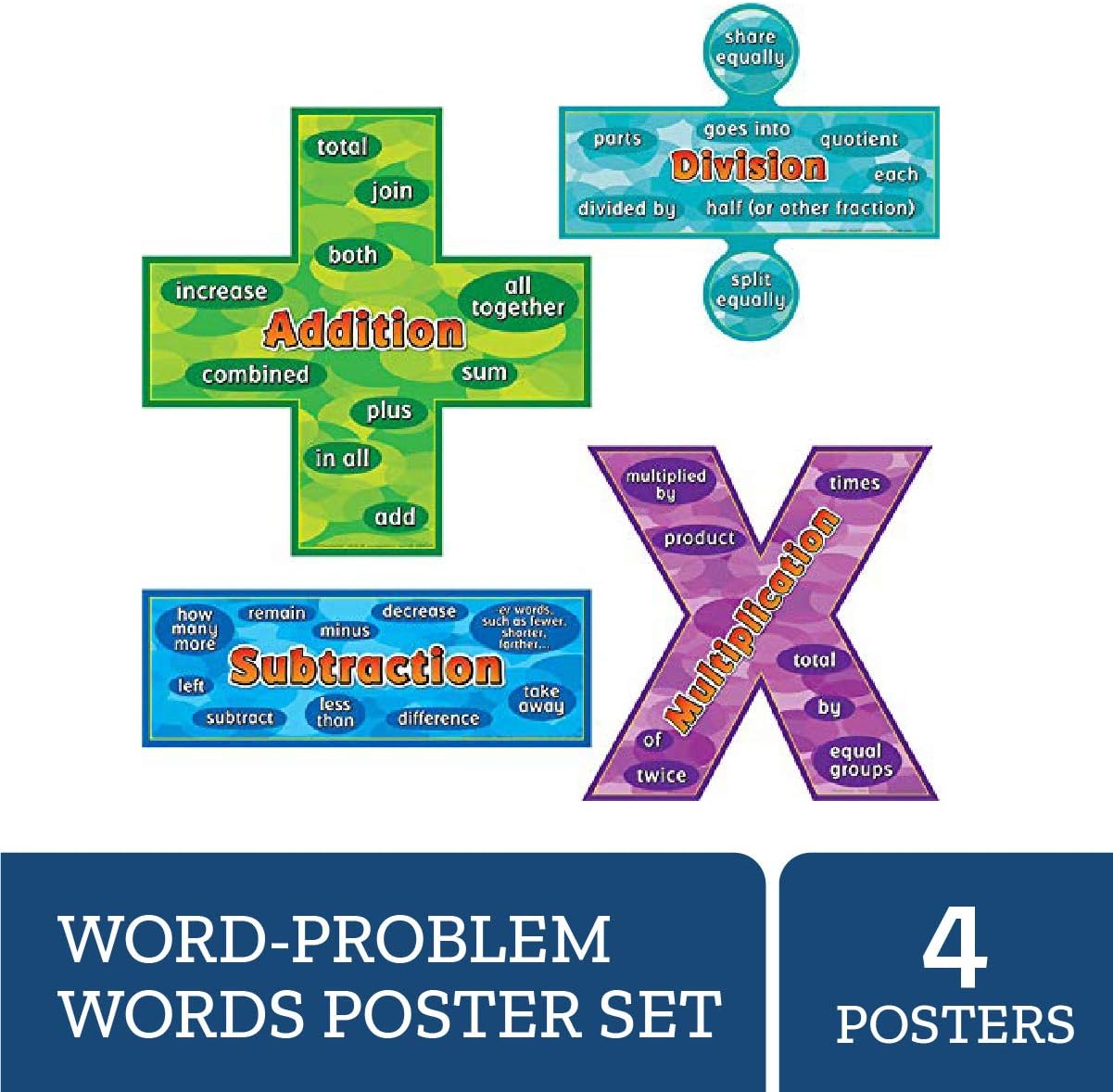 Amazon Com Really Good Stuff Word Problem Words Poster Set Includes 4 Die Cut Laminated Posters With Common Words To Add Subtract Multiply Or Divide Great Classroom Resource Home Kitchen